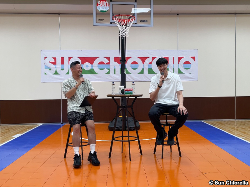 千葉ジェッツに所属する渡邊雄太は6月21日、スポンサー契約を結ぶ株式会社サン・クロレラの本社で行われたイベントに登場。招待された子どもたち約50名を対象にトークショーやスキル講座を開いた。