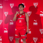 会見には、プーマ ジャパンの井上緑斎社長、千葉ジェッツふなばし田村征也社長、そして2024-25シーズンのBリーグで「ベストディフェンダー賞」を受賞した原修太が登壇。原はプーマ製の新ユニフォームを着用し、会場で初披露された。