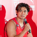カラーリングについても「映える赤がいい。自分に似合っているかどうかは別として(笑)、気分が上がる色だと思う」と笑顔を見せた。また、着心地については「フィット感がすごく良い。バスケ選手は手足が長くて、お尻が大きい体型が多くて窮屈に感じることもあるが、今回はそれを感じさせない。プレー中の動きやすさも期待できる」と高評価を与えた。