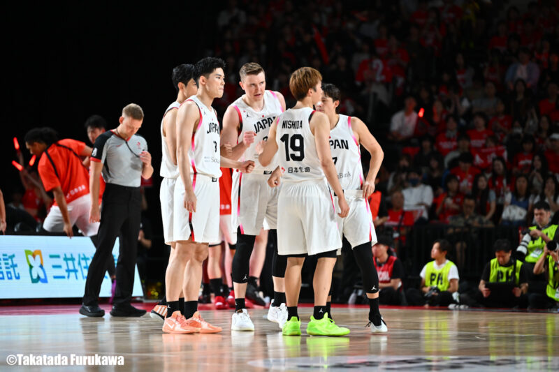 8月5日開幕の「FIBAアジアカップ2025」に向けて強化を進める日本は、テーブス海(アルバルク東京)、金近廉(千葉ジェッツ)、吉井裕鷹(三遠ネオフェニックス)、ジェイコブス晶(フォーダム大学)、ジョシュ・ホーキンソン(サンロッカーズ渋谷)が先発に名を連ねた。