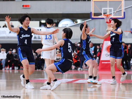 樟蔭は試合開始3分ほどで13-2の好スタートをきると、着実に2ポイントを重ねて、第1クォーターから30得点超えで圧倒。ダブルスコアの差で迎えた後半は、15年ぶりに夏の全国きっぷを獲得した誠英も50得点と食らいついたが、走力が光るハイペースな樟蔭に軍配。最終スコア90-77で決着した。