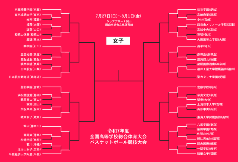 高校バスケの夏の日本一を決める『令和7年度全国高等学校総合体育大会 バスケットボール競技大会(インターハイ)』は大会2日目が終了。女子は岡山市総合文化体育館とジップアリーナ岡山で2回戦16試合が行われた。