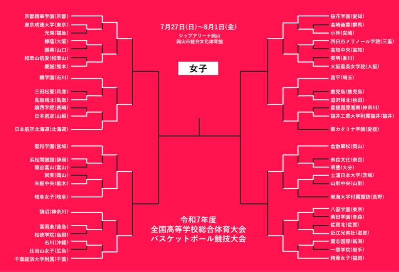 7月29日、高校バスケの夏の日本一を決める『令和7年度全国高等学校総合体育大会 バスケットボール競技大会(インターハイ)』は大会3日目が終了。女子はジップアリーナ岡山で3回戦8試合が行われ、準々決勝に進むベスト8が決まった。
