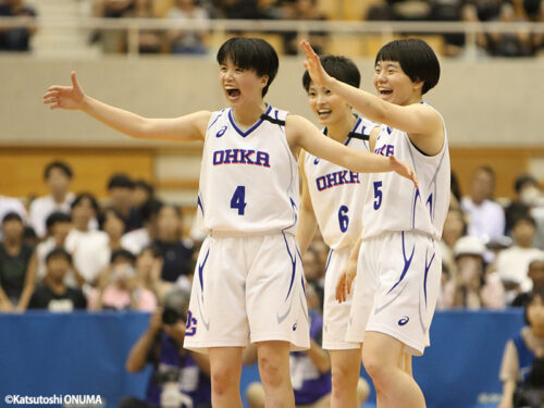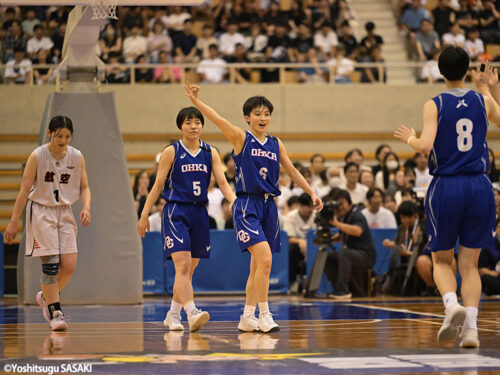 「その試合で最後の最後まで粘って、粘って。ディフェンスを頑張れば勝てるということが選手たちの自信になったと思います。この大会を通しても、特に薫英さんや精華女子さん、今日の試合も大崩れせずに、苦しいときこそディフェンスだという認識がチーム全員で持てた。選手たちもちゃんと声掛けをし、みんなで目を合わせて意思疎通ができたところが大きな勝因じゃないかなと思います」と、白コーチは6月からインターハイまでの戦いを総括した。