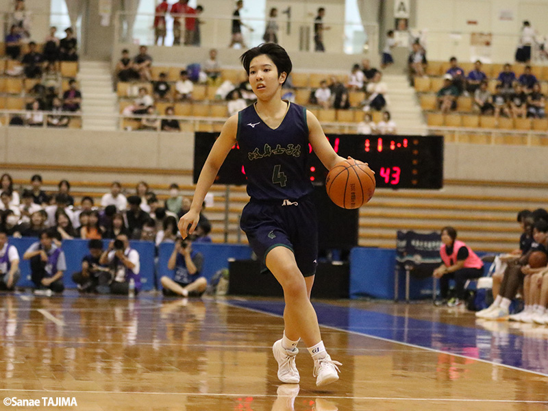 「絶対負けないという気持ちでやっていました」というポイントガードの濱田。ケガで不出場となったゲームキャプテンの金澤杏、チームキャプテンの棚倉七菜子(ともに3年)の代わりにゲームキャプテンを担い、チームを引っ張った。