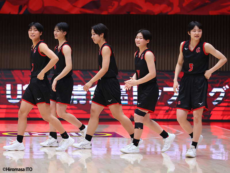 キャプテンの三宅香菜は「全国のトップレベルのチームと試合ができる機会をいただけてうれしい」と感謝し、「粘り強いディフェンスから試合の流れをつかみ、1試合を通して走り勝つバスケットを見てほしい」と気合を入れる。苦しいときこそ自分がやるという強い気持ちで勝利に導き、「全国各地で岐阜女子のバスケを多くの人に見てもらえることが楽しみ」とも語った。目標は全勝優勝。「日本航空北海道。インターハイ準決勝で負けており、リベンジしたい」と意識する相手を挙げた。