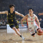 藤井 富樫勇樹選手(千葉ジェッツ)とのマッチアップは、もうコート上で“鬼ごっこ”みたいになります。常に追いかけ回さなければいけないですし、少しでも空いたらすぐ打ってくる。完全に止めるのは無理なので、せめてフリーで打たせないように最後までチェックすることを意識しています。