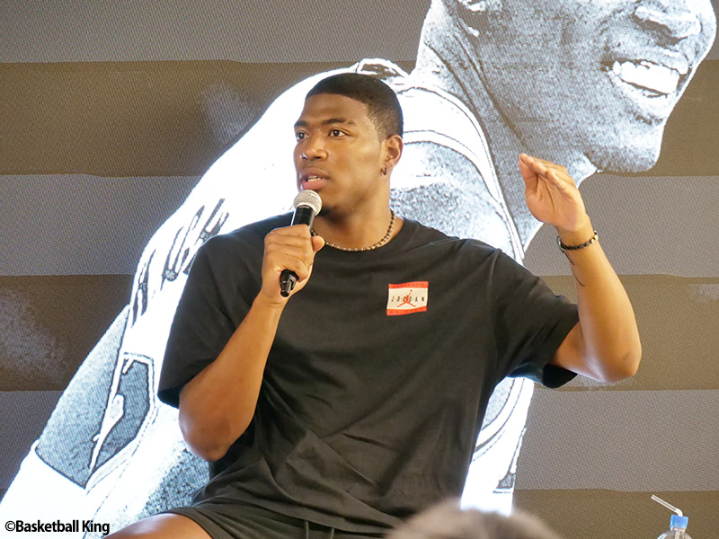 質疑応答のコーナーでは、参加者から次々と質問が投げかけられた。「感情表現が難しい」と感じている学生には「日本では感情を抑える文化があるけれど、バスケでは楽しむ姿勢が大事。恥ずかしがらずに情熱を出すことで自然に表現できるようになる」とアドバイス。さらに「相手からトラッシュトークを受けても僕は冷静さを貫く。プレーで示すことが一番」と、自身の流儀も明かした。