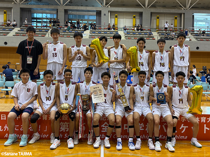 8月22日から24日の期間で鹿児島県にて開催された「令和7年度全国中学校体育大会 第55回全国中学校バスケットボール大会」(以下、全中)。24日の最終日は男女準決勝、決勝が行われ、男子は準決勝で四日市メリノール学院中学校(三重県)を62−41で破った金沢学院大学附属中学校(石川県)が、決勝でも世田谷区立梅丘中学校(東京都)を相手に58−43で勝利。初の日本一に輝いた。