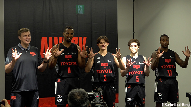 8月27日、アルバルク東京が2025-26シーズンの新体制発表記者会見を開催した。新アリーナ「TOYOTA ARENA TOKYO」で行われた会見にはデイニアス・アドマイティスヘッドコーチをはじめ、新加入のブランドン・デイヴィス、マーカス・フォスター、中村浩陸の3名と、サブキャプテンを務めるテーブス海の5名が並び、国内外での戦いに挑む決意を語った。