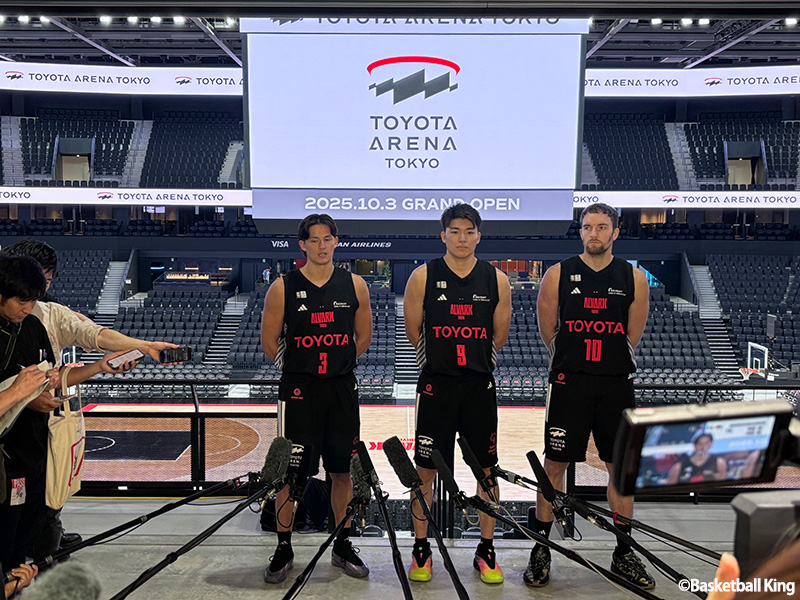 8月28日、アルバルク東京が10月3日にこけら落としを控える新アリーナ「TOYOTA ARENA TOKYO」をメディアに公開した。囲み取材にはザック・バランスキー、安藤周人、テーブス海の3選手が対応し、新本拠地で戦うシーズンに向けて思いを語った。