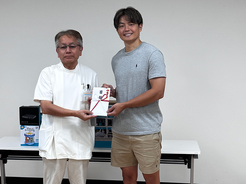 2024-25シーズンに辻が成功させた3ポイントシュートは127本。その積立金423,291円に加え、試合会場でファンから寄せられた募金359,527円を合わせ、総額782,818円が寄贈品や寄付金として子どもたちに届けられた。