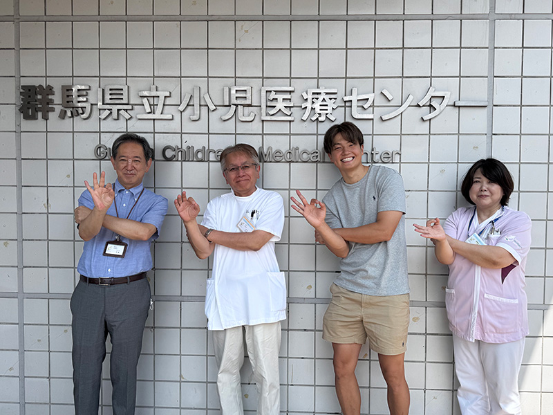 群馬クレインサンダーズに所属する辻直人が、社会貢献活動「スリーピース」の一環として8月31日、群馬県の群馬小児医療センターを訪問し、寄付・寄贈式典を行った。
