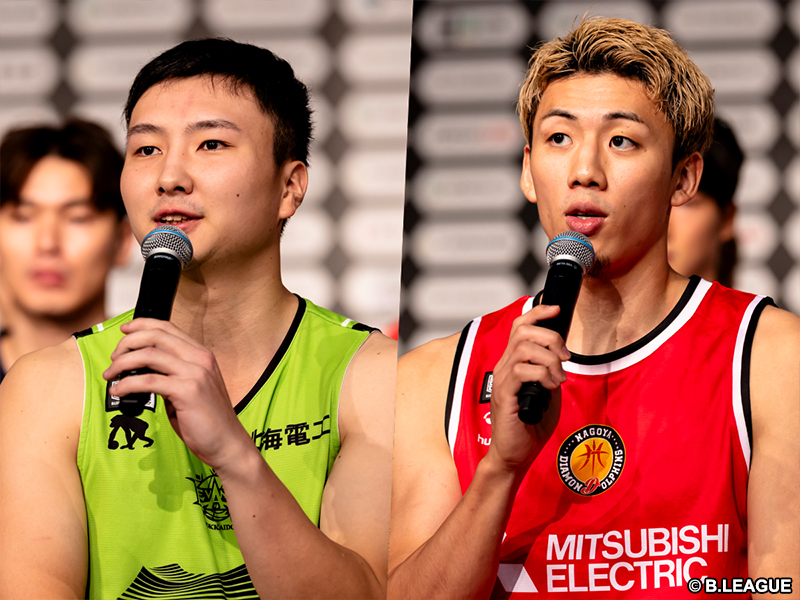 9月22日、東京都内で『りそなグループ B.LEAGUE 2025-26 SEASON TIPOFFカンファレンス』が開催され、B1各クラブの代表選手が集結。10月4日(土)と同5日(日)の第1節で対戦する名古屋ダイヤモンドドルフィンズの今村佳太とレバンガ北海道の富永啓生がメディアの取材に応じた。