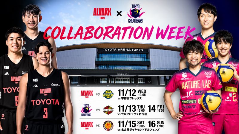 9月24日、Bリーグのアルバルク東京とバレーボールのSVリーグに所属する東京グレートベアーズが、コラボレーションウィークを開催することを発表した。