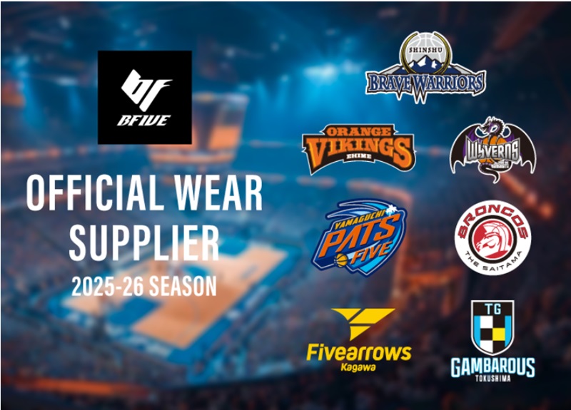 9月26日、バスケットボールブランドの『BFIVE』を展開する株式会社フラスコ100ccは、同ブランドがBリーグ2025-26シーズンの7クラブとオフィシャルサプライヤー契約を結んだことを発表した。