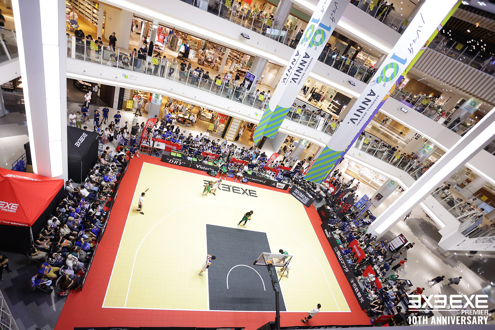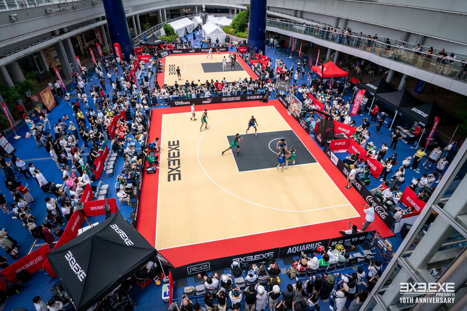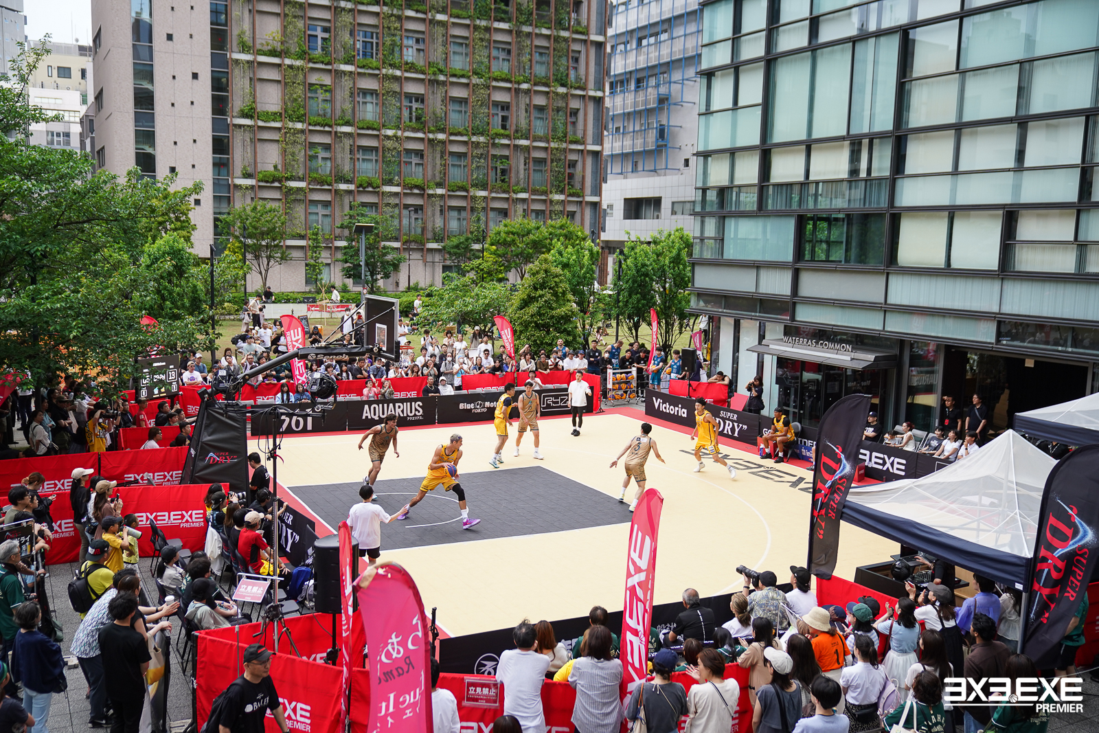 3x3は 5人制バスケットボールの半分というコンパクトなスペースで開催ができ、また他のスポーツでは考えられないような象徴的なランドマークや歴史的建造物、商業施設、駅前等、都市を象徴するランドマークを舞台に開催する都市型スポーツです。3x3.EXE PREMIERは全国各地の駅前やショッピングモール等、休日に人が集まる場所で開催しており、プレーヤーがたくさんのお客さんの前で輝ける環境を提供しています。