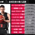 B1リーグ戦第10節において達成が期待される個人記録をバスケットボールキング編集部がピックアップ。千葉ジェッツを支えるジョン・ムーニーとディー・ジェイ・ホグが節目の得点記録に近づいているほか、琉球ゴールデンキングスの岸本隆一は、富樫勇樹(千葉J)、安藤誓哉(横浜ビー・コルセアーズ)、辻直人(群馬クレインサンダーズ)に次ぐ史上4人目となる3Pシュート1000回成功が射程圏内に。また、アルバルク東京のキャプテンを務めるザック・バランスキーは、過去8人が達成している500試合出場にリーチをかけている。