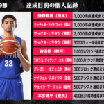 B2リーグ戦第9節において達成が期待される個人記録をバスケットボールキング編集部がピックアップ。青森ワッツでチーム最多14.2得点を挙げているマックス・ヒサタケは、通算80人が達成している通算2000得点達成まであと23としているほか、300スティールもあと8。今節中の達成は少々ハードルが高いが、到達すれば史上18人目の大台到達となる。また、谷直樹(神戸ストークス)は1000リバウンド達成にリーチ。今シーズンはプレータイムが少なく足踏みが続いているが、これまで62人が達成している節目に到達する瞬間は訪れるか。
