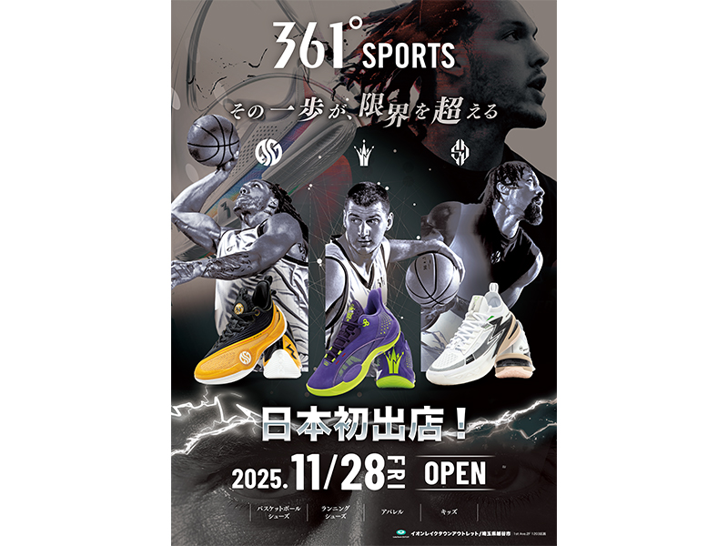 世界的アスリートにも支持されるグローバルスポーツブランド「361°(スリーシックスティーワン)」が、ついに日本へ本格参入する。その第1号店が11月28日(金)、埼玉県越谷市のイオンレイクタウンアウトレット2階にグランドオープンすることが決定した。