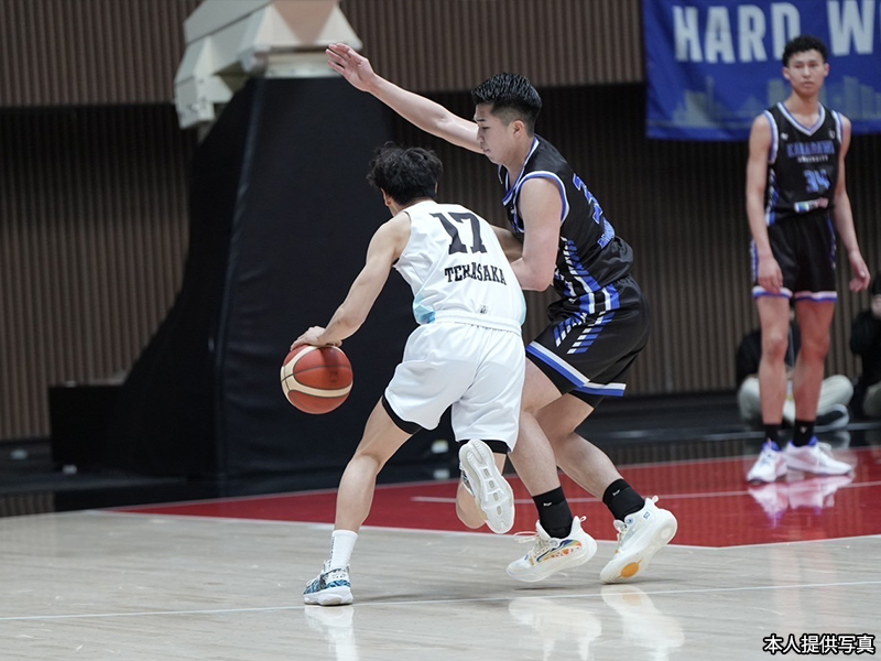 寺坂 高校では1番(ポイントガード)、2番(シューティングガード)をやっていたのですが、山梨学院はチーム全体の身長があまり高くなかったこともあって、自分が4番(パワーフォワード)、5番(センター)をやっていました。チーム状況に自分がアジャストしないといけないので仕方ないですが、スクリーンなどやったことのない部分では勉強になったと思っています。