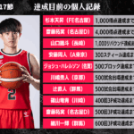 B1リーグ第17節において達成が期待される個人記録をバスケットボールキング編集部がピックアップ。今節は日本代表でも活躍している齋藤拓実(名古屋ダイヤモンドドルフィンズ)が、通算28人が達成している500回3P成功まで2としているほか、通算38人達成の4000得点も射程圏内にとらえている。今節中にダブルで達成する可能性もありそうだ。また、日本バスケットボール界を盛り上げてきた辻直人(群馬クレインサンダーズ)と篠山竜青(川崎ブレイブサンダース)も大記録が見えてきた。篠山は前節で25得点13アシストを挙げる大活躍。衰え知らずの37歳にとっては、過去50人が達成してきた400回3P成功も“通過点”にすぎないだろう。