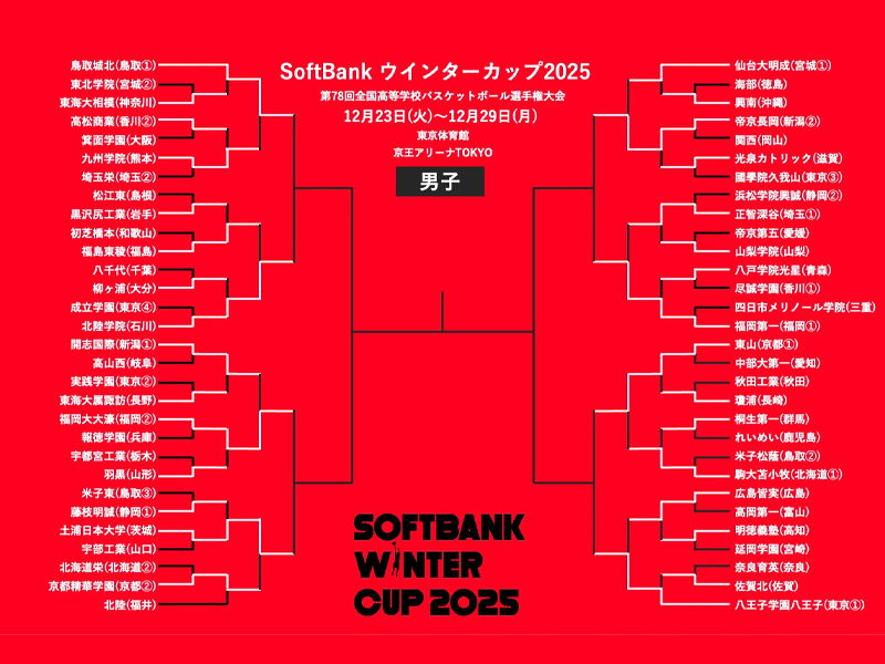 12月26日、高校バスケの日本一を決める全国大会「SoftBank ウインターカップ2025 令和7年度 第78回全国高等学校バスケットボール選手権大会」の大会4日目を迎え、男子は3回戦8試合が行われた。