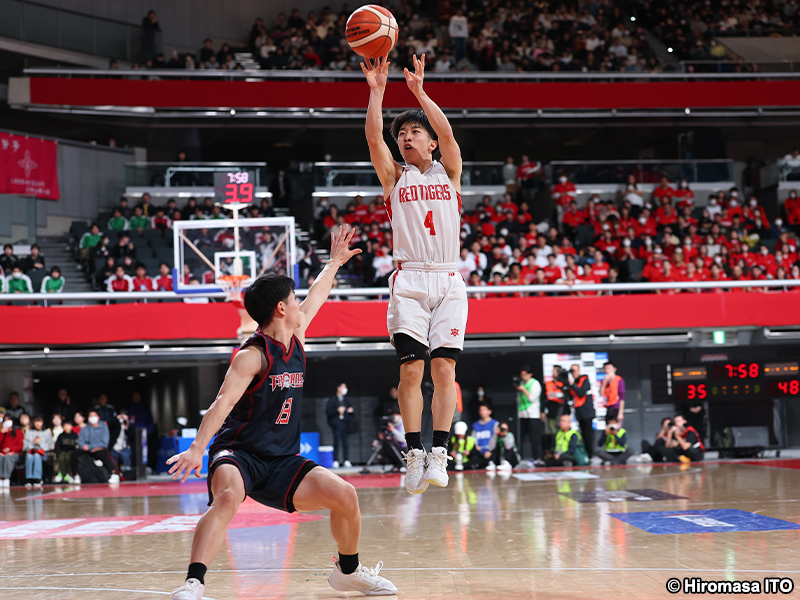 12月26日の「SoftBank ウインターカップ2025 令和7年度 第78回全国高等学校バスケットボール選手権大会」男子3回戦、開志国際高校(新潟県)と福岡大学附属大濠高校(福岡県)による戦いは75-77でタイムアップ。40分では決着がつかず、オーバータイムの末に福大大濠がベスト8に勝ちあがった。