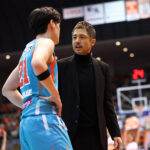 真価が問われる第2戦、まずは三谷桂司朗がフランクスとマッチアップし、タイトなディフェンスで奮闘。前日に成功0本だった3ポイントシュートも3本決めて、果敢にペイントアタックする姿勢も見せた。渡部もプレー時間や得点数は前日より少なかったが、ディフェンスで体を張ってつないだ。朝山HCは、「まずはこちらが伝えて体現してほしいところをやりきってくれたと思います。桂司朗も琉もフランクス選手に対してしっかりと戦ったところは非常に良かったです」と評価した。