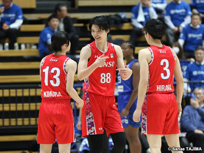 試合は、第1クォーター中盤からアニマムジャックダニエルや笠置晴菜らのシュートで抜け出したデンソーが22-11とリードして第1クォーターを終える。しかし第2クォーターに入ると、デンソーは東京羽田のポイントゲッターであるシャノン・ティアラ・フルーカーに次々と得点を許し、点差を縮められてしまう。