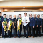 2025年3月、優勝報告でホームタウンの沖縄市を訪れる安永GMや選手ら[写真]=長嶺真輝