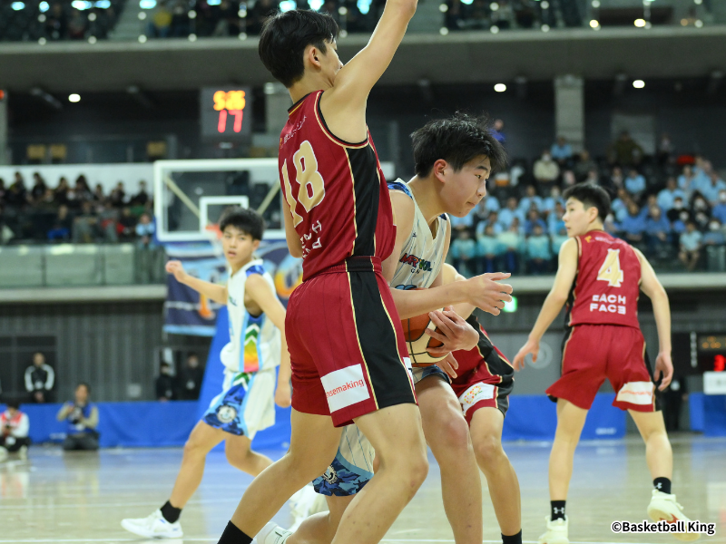 1月5日の四日市メリノール学院中学校(三重県)と越谷アルファーズU15(埼玉県)による「京王 Jr.ウインターカップ2025-26 2025年度 第6回全国U15バスケットボール選手権大会」の男子2回戦は、四日市メリノールに軍配が上がった。最終スコアは57-40。学校部活動とBリーグのユースチームが顔を合わせたこの試合は、将来性豊かなビッグマン同士のマッチアップが実現した一戦でもあった。