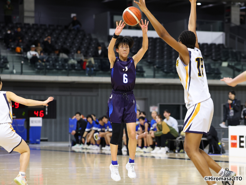 スピード、シュート力、ダイナミックさを備える牧野は、キャプテンの林とともにJ,sphereのオフェンスを引っ張る存在でもある。「自分がチームのエース」と自負する彼女は、今大会の初戦から20得点オーバーの活躍を見せ、KONAN WILD TRICKYS(大阪府)を退けた準々決勝では25得点をマーク。しかし準決勝では「前半、自分が弱気なシュートばかり打ってしまいました。決めることができなくて、相手の得点につながってしまったところが多かったと思います」と、前半は4得点にとどまった。