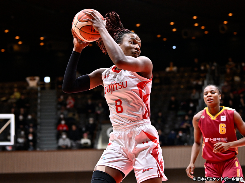 富士通1点リードで迎えた第4クォーター残り25秒、富士通はバックコートからのスローインを狙われ、ディマロ・ジェシカ・ワリエビモ・エレに逆転となる2ポイントを許したが、直後のプレーで町田瑠唯とジョシュア・ンフォンノボン・テミトペのホットラインで2点を入れ返し再逆転。富士通がそのまま逃げきり、59-56で接戦をものにした。