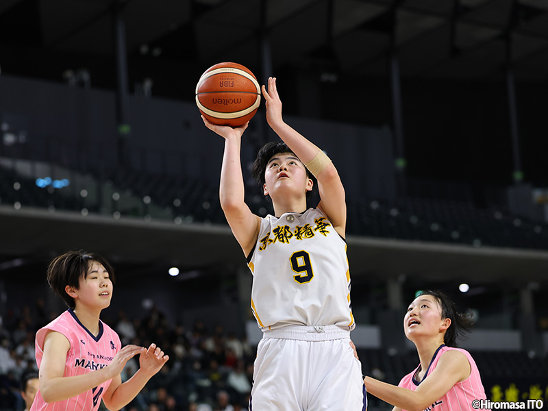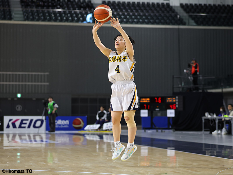 「まったく冷静にプレーができなかったです」。ポイントガードを務める松田は第1クォーター序盤で一度交代を余儀なくされた。しかし、京都精華学園は強みのインサイドで終始主導権を握り、リバウンド本数では試合を通して63対34と圧倒。アニボグ ジェニファー チナザは28得点19リバウンドをマークする活躍を見せた。