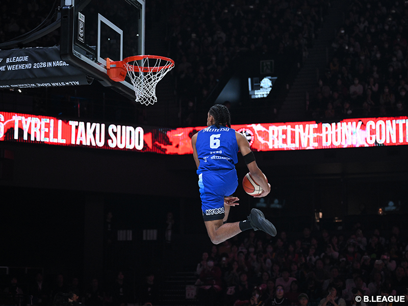 1月17日、『りそなグループ B.LEAGUE ALL-STAR GAME WEEKEND 2026 IN NAGASAKI』2日目のイベント『RELIVE DUNK CONTEST』がハピネスアリーナで開催され、須藤タイレル拓(ファイティングイーグルス名古屋)が初優勝を果たした。
