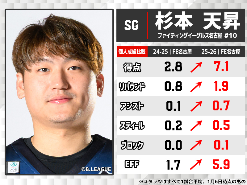 1月24日からの「りそなグループ B.LEAGUE 2025-26 SEASON」再開を待ち、束の間の休止期間を過ごすBリーグ。前半戦を終え、昨シーズンの通算成績とここまでのスタッツを比較し、大きな飛躍を遂げた選手10名を厳選した。得点力のみならず、コート上の支配力を示すEFF(貢献度)やアシストにおいて、驚異的な伸び率を記録した顔ぶれである。