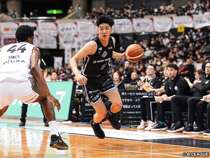 Bリーグでは、12月28日の青森ワッツ戦でいきなり先発起用され、25分出場11得点3リバウンド2アシストの鮮烈デビュー。「AJ(アンソニー・ゲインズ・ジュニア)がケガで不在だったというのもあるんですけど、それでも25分で11点を取れてアシストもできて、そこで大きな自信がつきました」と頷いた。
