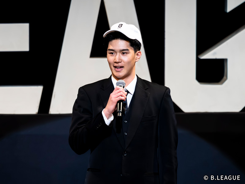 マッチアップしたい選手には、高校の先輩である富永を挙げた。「セレブレーションをさせないくらい、バチバチのディフェンスをしたい」と闘争心を露わにする。目標とする選手には佐々木隆成(三遠)を挙げ、「身体能力を活かしたシュート力、ジャンプ力など、自分がポイントガードとして価値を上げていく際に参考になる」とプロキャリアの指針を示した。