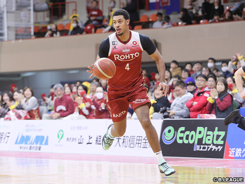 西地区6位のバンビシャス奈良は、後半戦に入って今シーズン初の4連勝。ターンオーバーが減り、我慢強く戦えていることが白星に結びついている。今節は同地区2位の愛媛オレンジバイキングスをホームで迎え撃つ。第5節の対戦では奈良が連敗したが、平均23.6得点を挙げているジェイミン・ブレイクフィールドが不在だった。大黒柱の得点力を前面に押し出し、借りを返したい。