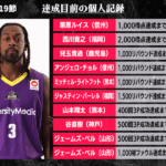 B2リーグ戦の第19節において達成が期待される個人記録をバスケットボールキング編集部がピックアップ。今節は山形ワイヴァンズのジェームズ・ベルに注目したい。今シーズンは自己ワーストペースの水準ではあるものの、平均15.9得点を挙げるなど、B2屈指のオールラウンダーとして活躍。来日4年目にして、過去11人しか達成していない500回3P成功まで3に迫ってきた。また、少々地味な記録ではあるが、あと11としている1000被ファウルも、達成すれば史上19人目となる立派な記録。果敢に攻め込む背番号3に期待だ。