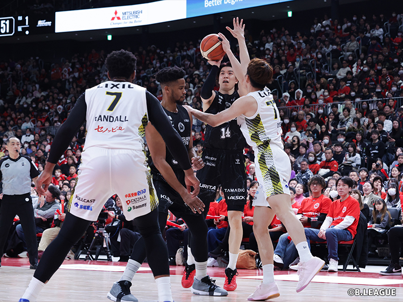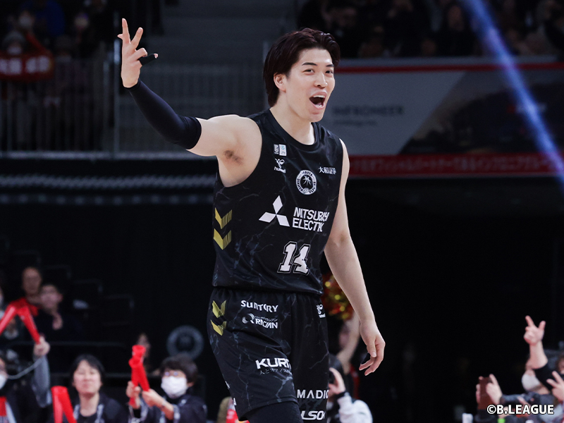 佐藤はブランクを感じさせない献身的なディフェンスを見せると、第4クォーター残り5分55秒には待望の瞬間が訪れる。加藤嵩都のパスから迷わず放った3ポイントシュートがネットを揺らした。復帰後初得点を記録した佐藤は、その後もディフェンスリバウンドやアシストをマークし、最終盤までコートに立って勝利の瞬間を噛み締めた。