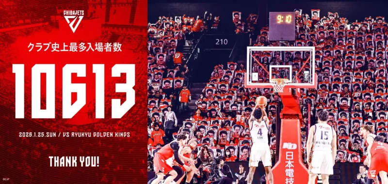 2月12日、千葉ジェッツは1月25日に行われた琉球ゴールデンキングス戦において、クラブ史上最多となる1万613人の入場者数を記録したことを発表した。今シーズンの最多更新はこれで3度目となる。