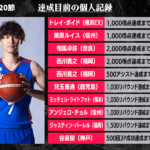 B2リーグ戦の第20節において達成が期待される個人記録をバスケットボールキング編集部がピックアップ。今節はB2得点ランキング1位のトレイ・ボイド(横浜エクセレンス)が、B2参戦1年目ながら通算1000得点まで8としているほか、谷直樹(神戸ストークス)が通算12人が達成している500回3P成功にリーチをかけている。また、西川貴之(ライジングゼファー福岡)は、通算2000得点と500アシストが目前に迫ってきた。先月34歳となった福岡の背番号7は、年が明けてから20得点以上を2度マークするなど好調。節目の数字をあっさりと突破しそうだ。