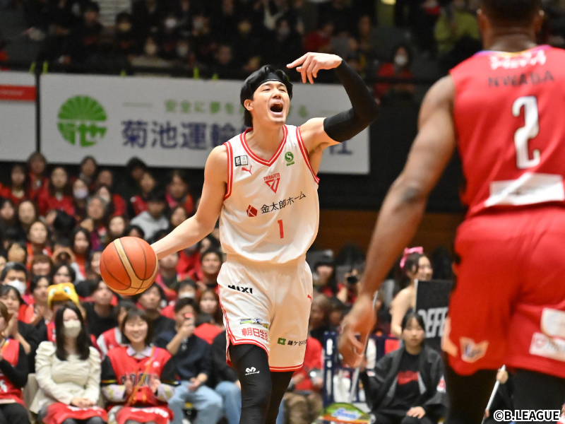 新たな日本代表の司令塔として注目が集まる齋藤拓実(名古屋ダイヤモンドドルフィンズ)は、仙台89ERSとの対戦で3ポイントの好調をアピール。GAME1では6本中5本、続くGAME2では7本中3本を沈め、2試合合計37得点を挙げた。GAME1では得点とアシストでダブルダブルも達成している。