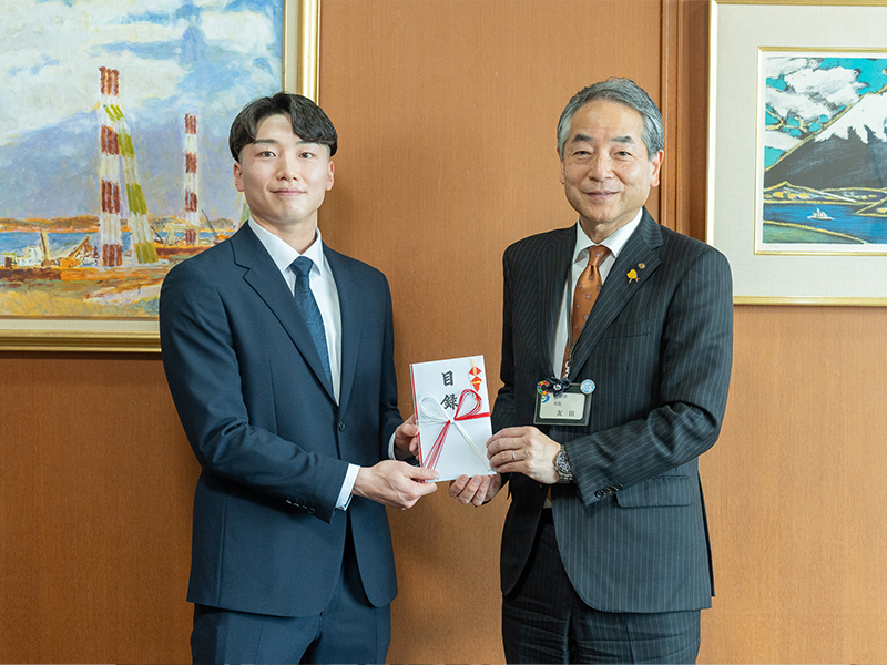 今回の訪問に際し、黒川はスポーツや文化の分野で活動する地元の子どもたちへの支援を目的として、松浦市へ寄付金も贈呈した。