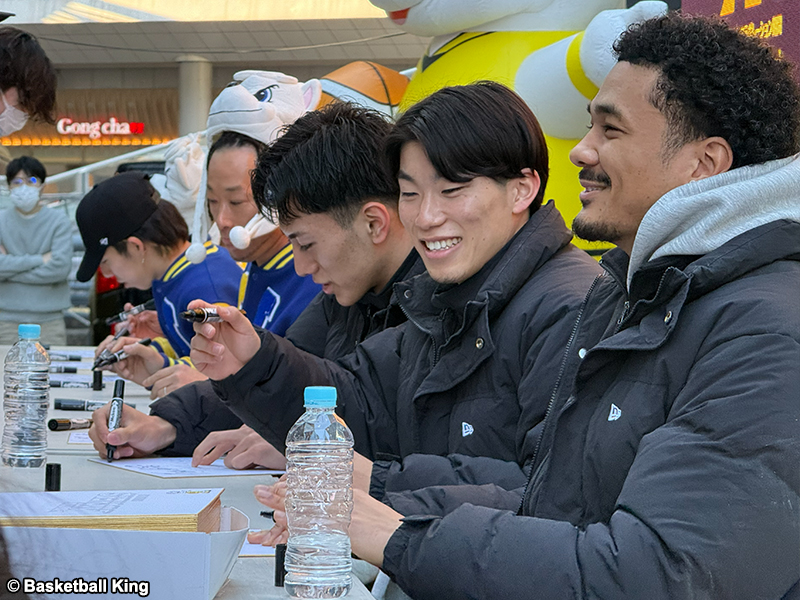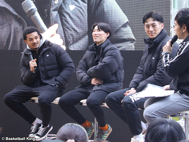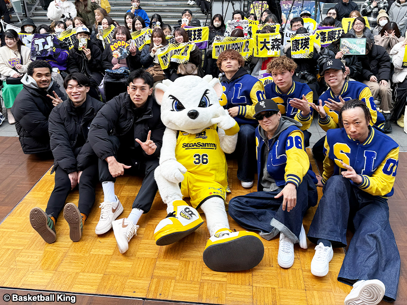 FIBA公式戦開催に伴いB1リーグ戦が一時休止しているなか、SR渋谷の若手3選手が渋谷ストリーム前の特設ステージに登場。マスコットのサンディーや、Dリーグで戦う同じセガサミーグループ「SEGA SAMMY LUX(セガサミールクス)」のメンバーとともにトークや写真撮影、サイン会でファンと触れ合い、会場は終始和やかな雰囲気に包まれた。