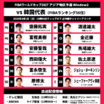 2月28日、日本バスケットボール協会(JBA)は、3月1日の「FIBAバスケットボールワールドカップ2027 アジア地区予選 Window2」男子韓国代表(FIBAランキング56位)戦に臨む男子日本代表(同22位)のロスター12名を発表した。
