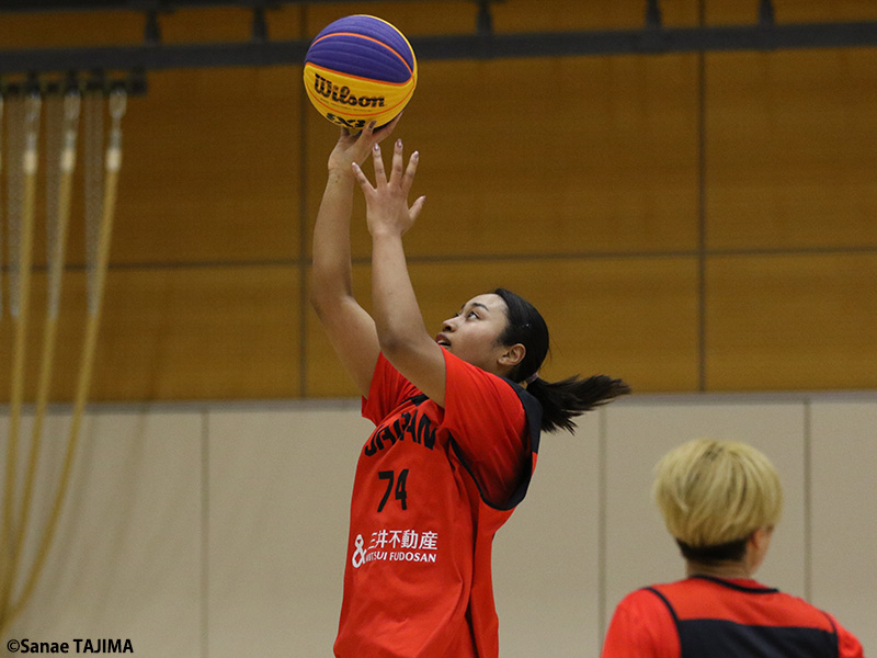 3月末にWリーグのプレーオフセミファイナルが控えている田中は、半年ぶりの3人制に、「合宿直前まで(トヨタ自動車で)5人制の練習をしていたので、体がちょっと違うというか、5人制で戦っている体になっているので、3人制だとまだ違和感を感じるところはあります」と、感想を語る。