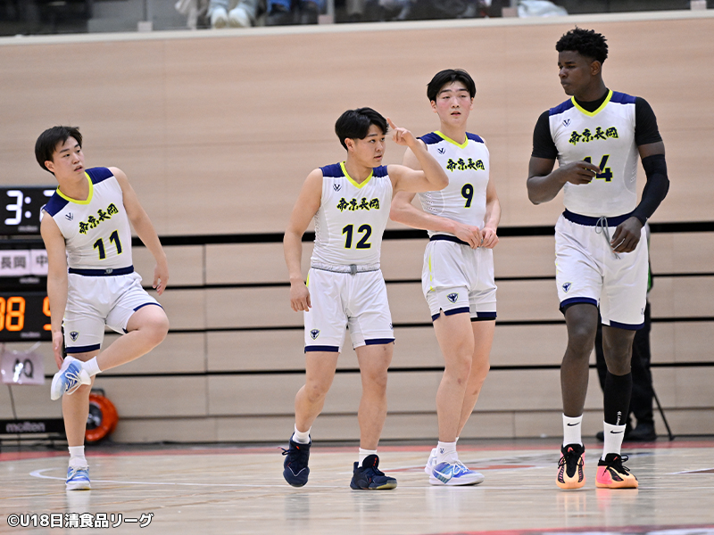 試合は序盤から互いに点を取り合う激しい展開となるが、ジョベパマリックの8得点を挙げる活躍もあり、帝京長岡が27-18で最初の10分間を終えた。第2クォーターでは岸本奏聖を中心に得点を重ね、帝京長岡は51-37とリードを広げてハーフタイムへ。後半に入っても帝京長岡の勢いは止まらず、危なげない試合運びで92-67と圧勝し、引き続きU18トップリーグへの切符を掴み取った。
